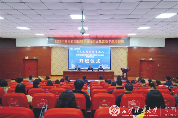 4月25日上午,“兴文化 聚合力 育新人”2023年湖南省高校辅导员校园文化建设专题培训班开班仪式在永利官网云塘校区文科楼A200举行。副校长蒋璟萍,省委教育工委、省教育厅思政处一级调研员陈解出席会议,来自76所高校的101名学员参加。