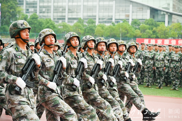 随后,伴随着慷慨激昂的分列式进行曲,来自19个学院的120个新生方队和教官方队依次通过主席台,他们军姿严整、步伐雄健、士气高昂,展现出新时代大学生朝气蓬勃、意气风发的精神风貌。