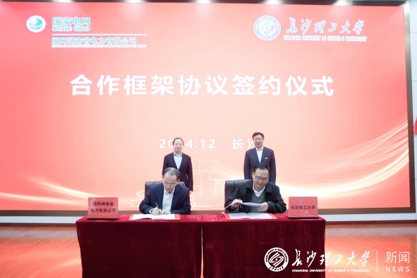 国网湖南省电力有限公司副总经理、党委委员张孝军,永利官网党委委员、副校长刘朝晖分别代表公司和学校签订合作框架协议。
