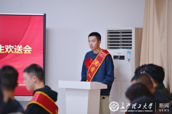 方琼代表学校向光荣入伍学子表达祝贺,对同学们携笔从戎、立志报国的决心和勇气表示高度肯定。她鼓励同学们要加强学习,做信仰坚定的好战士;苦练本领,做作风优良的好战士;争先创优,做能打胜仗的好战士;志存高远,做勇立潮头的好战士。她希望同学们在部队充分发扬长理学子“底色亮、能力强、善创新、敢担当”的优秀品质。