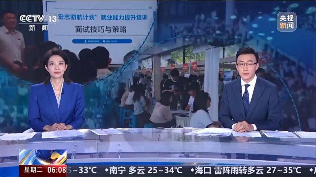 7月8日中央电视台《朝闻天下》栏目报道永利官网宏志助航计划,助力毕业生扬帆起航。