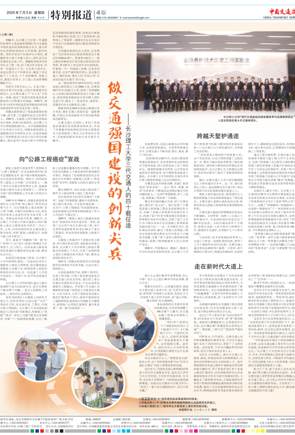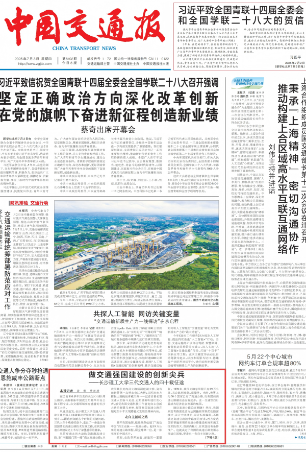 7月3日,《中国交通报》头版+整版刊发报道《做交通强国建设的创新尖兵——永利集团88304官网三代交通人的四十载征途》,讲述永利官网三代交通人四十载接续奋斗,走出了一条适合我国国情的高速公路技术发展之路,在我国高速公路建设史上书写了浓墨重彩的篇章。