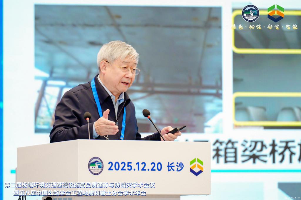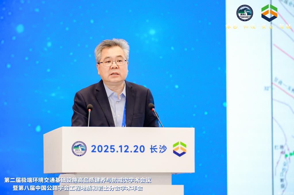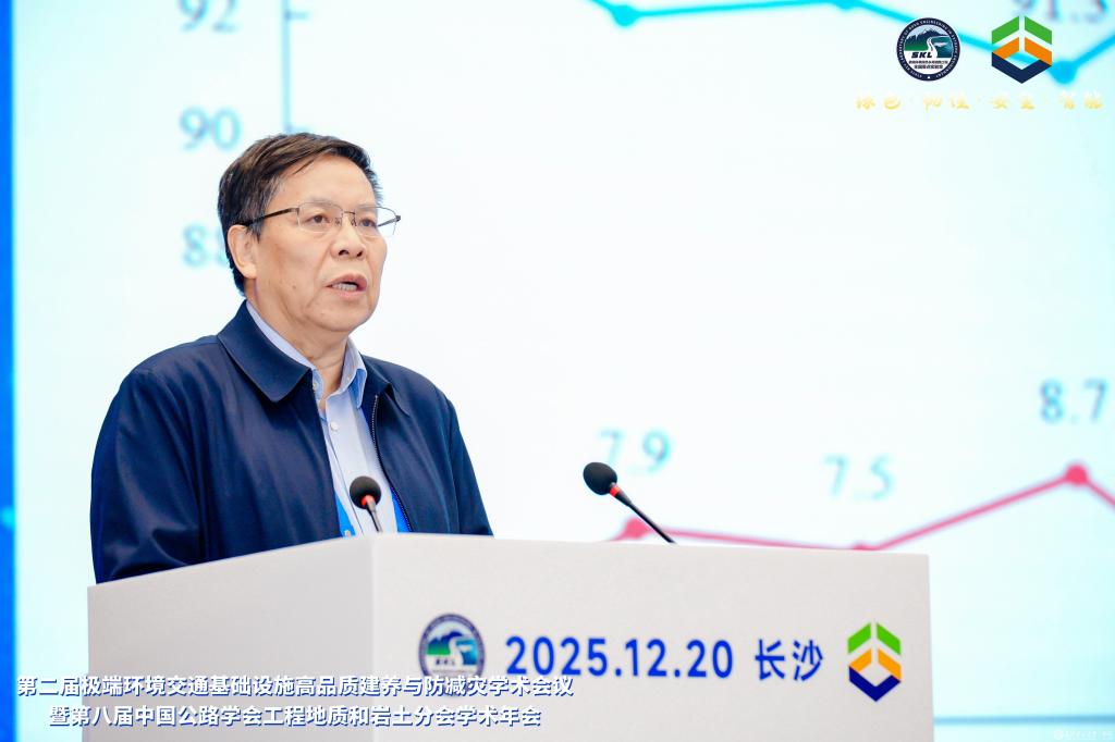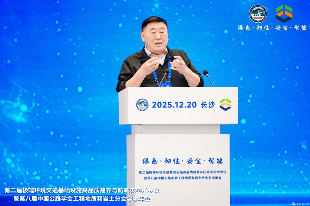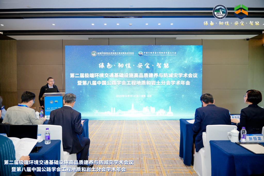 12月19日至21日,第二届极端环境交通基础设施高品质建养与防减灾学术会议暨第八届中国公路学会工程地质和岩土分会学术年会在湖南长沙举行。来自全国相关领域的近400位知名学者、行业精英齐聚一堂,聚焦极端环境交通基础设施绿色材料、长寿结构、智能建造、智慧运维、安全韧性、防灾减灾等研究热点与前沿方向展开深入探讨。