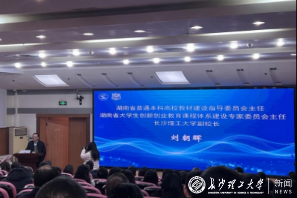 湖南省普通本科高校教材建设指导委员会、湖南省大学生创新创业教育课程体系建设专家委员会主任,永利官网副校长刘朝晖,省教育厅学生处负责人、就业指导中心负责人等领导出席会议并讲话。