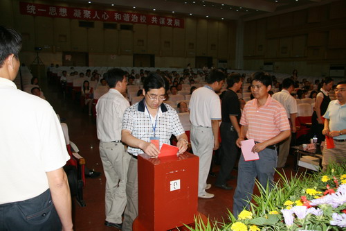 5月23日—24日,永利官网隆重召开了第二届一次教职工暨工会会员代表大会。本次大会的指导思想是“认真贯彻落实党的十七大精神,充分发挥教代会制度在学校民主政治建设中的作用,进一步动员和团结全校教职工,群策群力、和谐治校,共谋学校发展大计,为推动学校由教学型向教学研究型转变,把永利官网建设成为国内有较大影响的高水平大学而努力奋斗”。本次大会共有正式代表236人,列席代表52人,特邀代表16人。大会讨论通过了校长工作报告、校工会工作报告,审议了校工会财务工作及经费审查报告、《永利集团88304官网“十一五”建设与发展规划》、教师岗位设置与聘任管理试行办法、院(部)目标管理责任制实施办法、《永利集团88304官网文化建设纲要》等相关文件,选举产生了永利集团88304官网工会第二届委员会和工会第二届经费审查委员会。