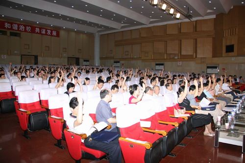 校党委书记王耀中在会上作了题为《和谐治校 科学发展 为建设国内有影响的高水平大学而努力奋斗》的重要讲话。王书记在讲话中总结了学校过去五年的主要成就与基本经验,指出了和谐治校是实现学校科学发展的必然要求,阐释了和谐治校的科学内涵,认为和谐治校就是要致力于从学校治理的角度建设出一个科学创新、民主法治、人文关怀、活力开放、安全文明的和谐校园,同时,深入分析了确保和谐治校理念落到实处应正确处理的五大关系。和谐凝聚力量,和谐推动发展,王书记希望全体师生员工团结一心、众志成城、和衷共济、和谐奋进,共同谱写永利集团88304官网辉煌的新篇章。