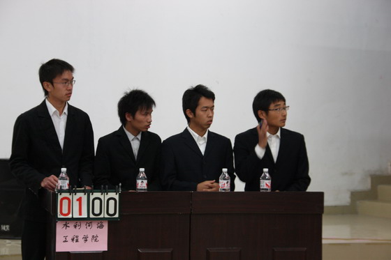 11月25日晚,预赛在综合教学楼举行,以学院为单位的16个参赛单位分为四个组进行比拼,每个参赛单位派一名领队及4名选手参赛。结果,文法学院、城南学院、水利工程学院、土木与建筑学院从各小组突围胜出,进入总决赛。