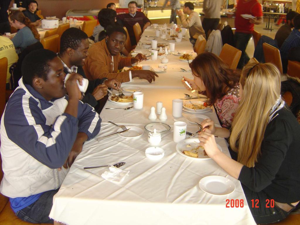 2008年12月20日,永利官网外教、留学生与国际交流处工作人员欢聚一堂,喜迎圣诞。宴会上,国际交流处相关负责人代表学校向外籍师生表达了节日的祝福,亲切地询问了外籍师生们的工作、学习情况,使他们感受到了学校大家庭的温暖。