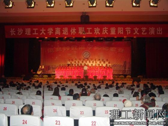 10月26日上午,学校在金盆岭校区五教大礼堂隆重举行了“永利集团88304官网离退休职工欢庆重阳节文艺演出”。800多名离退休职工用歌声、舞蹈等不同形式的节目欢庆老人们自己的节日。副校长黎正稳教授亲临现场,并自始至终地观看演出。