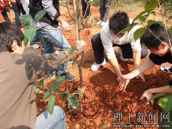 中午十二点,在文化广场举行简单的启动仪式后,294名青年志愿者奔赴云霞山。青年志愿者到指定地点分发树苗和工具之后,挥锹动铲,挖坑、取树、栽树、培土、浇水,一项项程序有条不紊。在近一个半小时里,志愿者欢歌笑语、热情高涨。共栽树苗100棵,为云霞山增添了春意,美化了校园。