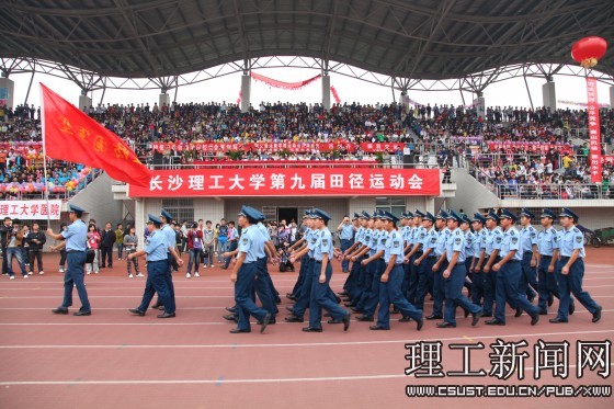 上午8:30,伴随着雄壮的《运动员进行曲》,在鲜艳的国旗和校旗带领下,彩旗队、仪仗队、鲜花队以及各运动员代表队组成整齐有序的方阵,迈着矫健的步伐,喊着激昂的口号,昂首步入会场。