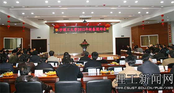 1月15日上午,云塘校区一办公楼九楼会议室张灯结彩,春意盎然,喜庆祥和,学校在此隆重举行2012年春节团拜会。校党委副书记洪源渤主持会议。校领导、各单位党政主要负责人参加了会议。