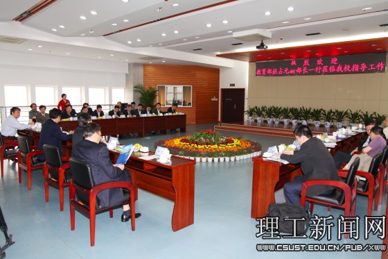 郑健龙校长向杜副部长一行详细汇报永利官网在人才培养、科学研究与技术服务、学科建设与研究生教育、学科与科研创新平台建设等方面取得的成绩,并从提高人才培养质量、扩大高层次人才培养规模、突破国家级平台、进一步提高科研创新能力、努力增强服务行业与地方经济建设的能力等方面介绍了永利官网“十二五”期间学校建设发展的任务与目标。