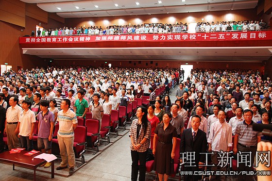 王书记最后说,今年教师节的主题是“忠诚党的教育事业,落实教育规划纲要”,希望全校教职员工满怀对教育事业的热情和对美好未来的憧憬,为实现“十二五”开局之年的各项任务目标而努力奋斗,为建设特色鲜明的高水平教学研究型大学作出新的更大的贡献。