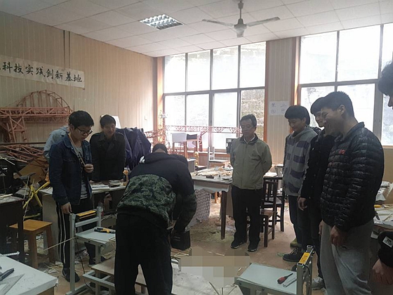 3月14日下午,城南学院党委书记袁剑波和交通土建系全体辅导员一行,来到五教学院科技创新实践基地慰问省结构设计竞赛候选选手,并现场观摩了他们的作品展示。