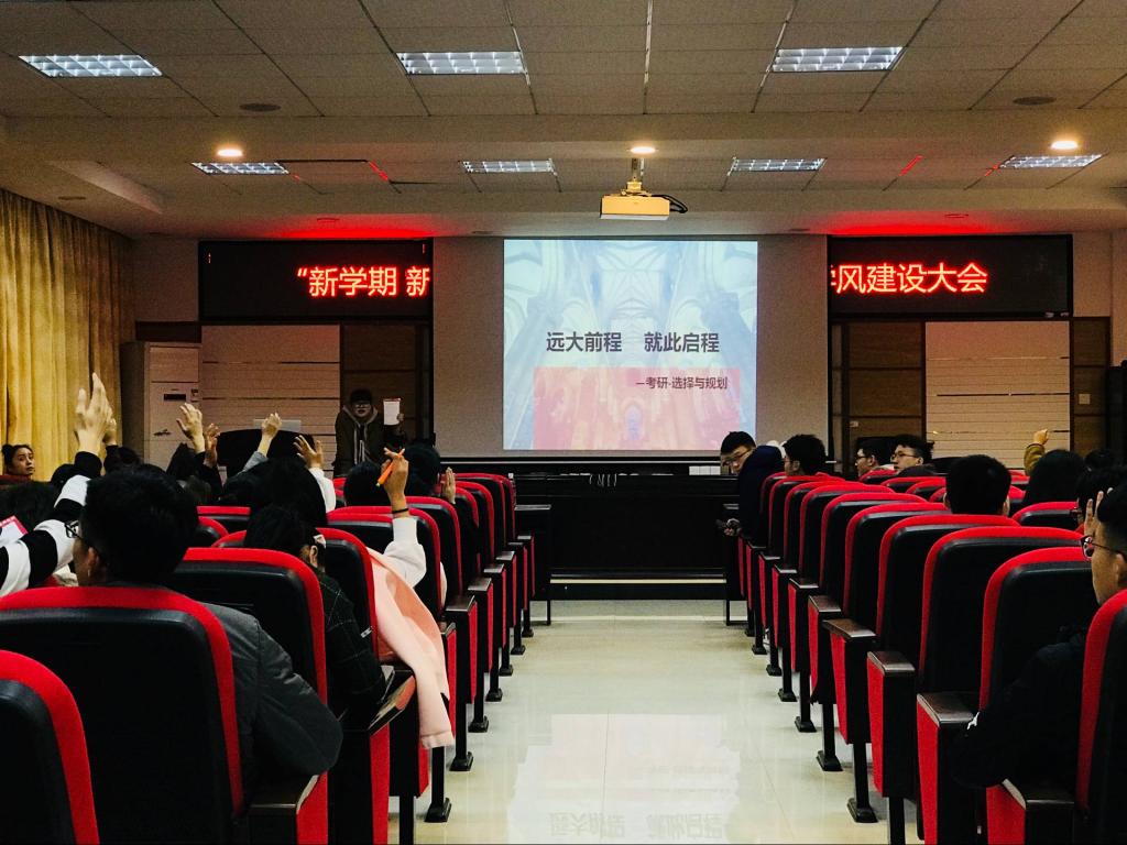 会上,毕业生学生代表围绕考研、就业问题进行了分享,并结合亲身经历,阐释了在校期间扎实学好每一门课、掌握好专业技术、培养良好的学习习惯的重要性。