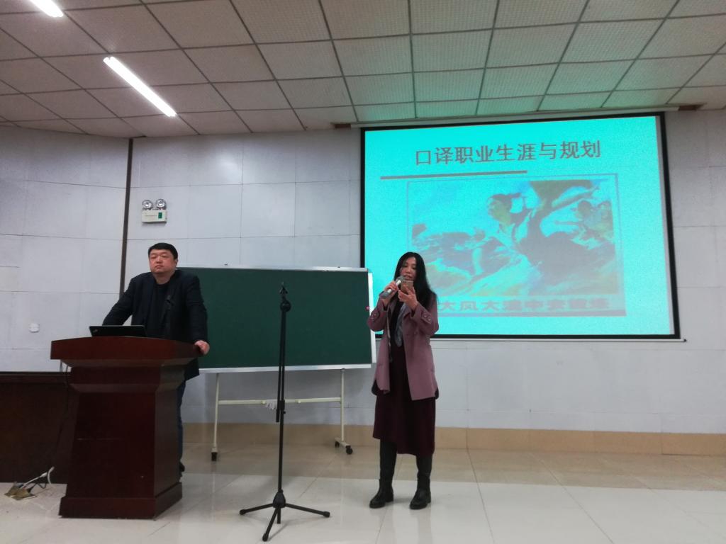 3月21日晚,中国翻译协会翻译能力培训与评估中心主任张雪涛应邀在文科楼A100为学院师生做了一场题为《口译职业生涯与规划》的讲座,讲座由外国语学院副长黄月华主持,全院近200名师生参加。