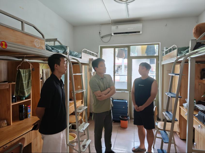 会议结束后,学院领导与辅导员一同前往学生公寓,走访留校学生。在走访过程中,学院一行仔细询问学生的学习、生活情况以及遇到的困难和问题,并及时提供有效解决措施。