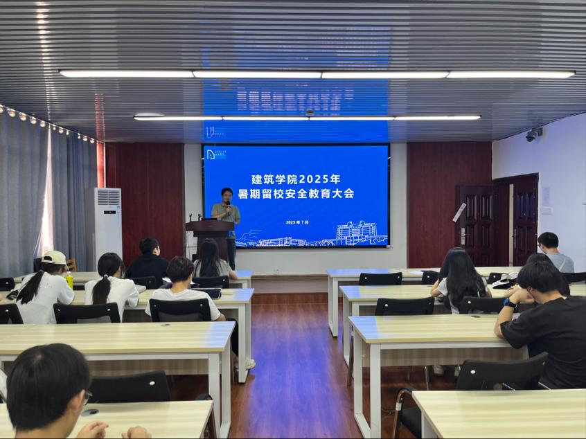为切实加强暑期留校学生的安全管理,提高学生的安全意识,营造安全和谐的校园环境,7月14日,建筑学院在金盆岭校区16教314召开了2025年暑期留校学生安全教育大会。学院党委副书记肖义慧、各年级辅导员以及全体暑期留校学生参加会议。