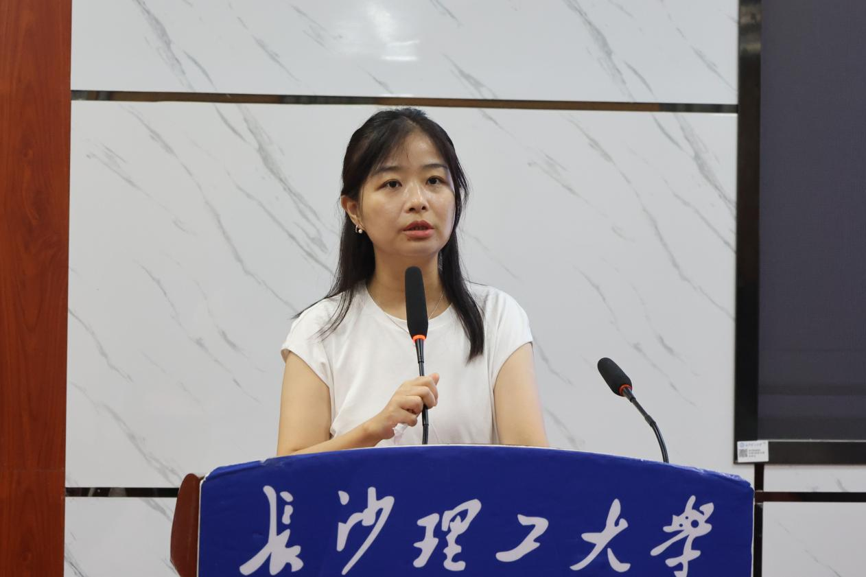 孙佳乐叮嘱同学们遇突发事件要保持冷静,第一时间联系辅导员,切勿盲目处置,切实保障自身安全。她通过具体案例,提醒同学们注意消防安全、用电安全、食品安全、防汛安全等。