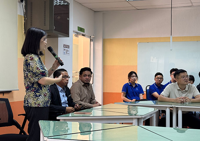 研学团成员参加了沙巴大学组织的开班会议,沙巴大学国际部副部长Beatrice详细介绍了学校的办学历史、特色以及研学期间的课程安排,并为学生们讲解了学生保险、体检等事宜,此次会议为研学团后续的学习和生活奠定了坚实基础。副院长盛丰强调:“真正的工程教育必须突破课堂边界。希望同学们以‘双重视角’开展研学——既要作为学习者吸收沙巴大学在海洋工程领域的先进技术,更要作为文化使者,在比较研究中深化对人类治水文明多样性的理解。这种跨文化的专业认知能力,将是未来工程师的核心竞争力。”