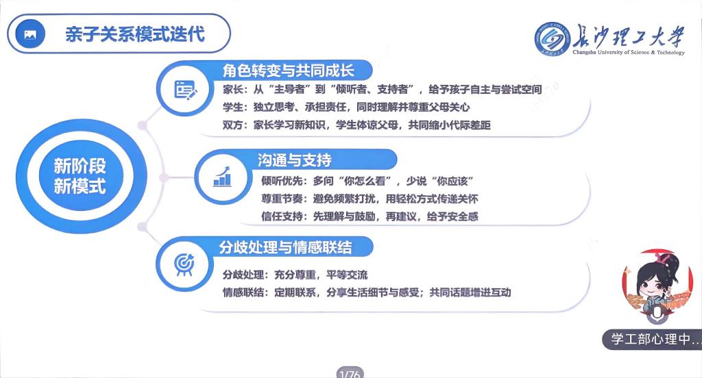 最后,王正博以“严管厚爱,精细护航”为主线,详解安全稳定、学风建设、日常管理、奖助体系和家校沟通五大板块,明确信息发布渠道与协同育人要求。