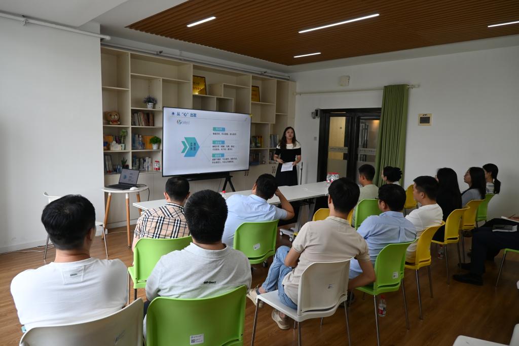 学院心理辅导员王正博为全体新生班主任作了主题为“用心守护,用爱陪伴”的心理健康工作专题培训。她围绕健康教育、监测预警、成长辅导、干预处置四个核心环节,系统讲解了如何普及心理知识、识别学生心理异常信号、进行初步谈心支持以及在危机情况下的应急处置流程。她特别强调了班主任在心理健康预警系统中的关键作用,提醒大家关注新生适应期等高发时段,善用班干部和宿舍长力量,并明确遇危机必须立即上报的原则。