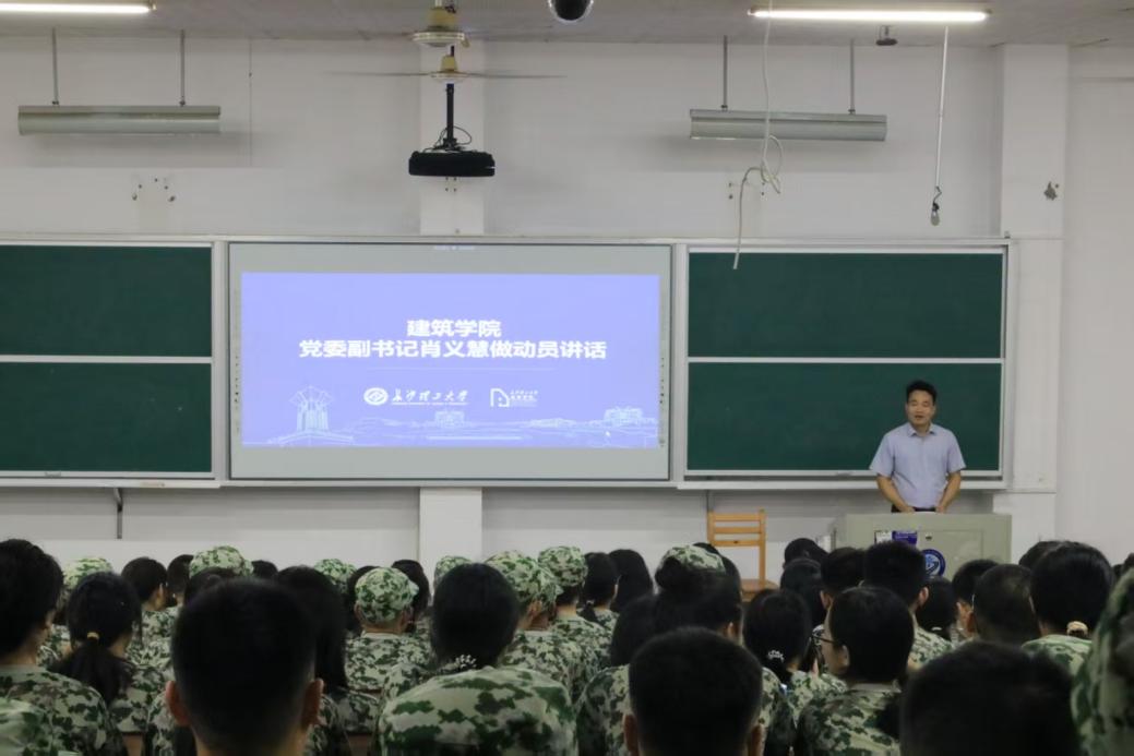 9月15日晚,建筑学院举行2025级新生军训动员大会,建筑学院党委副书记肖义慧、2025级新生辅导员王宇霖,新生各班级下班党员、下班干部以及全体新生参会。
