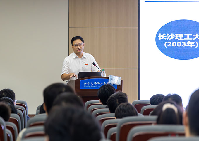 陈杰以“在艰辛而幸福的求学路上活出自己的精彩”为主题,回顾了学院自1956年以来的发展历程,重点介绍了学院在学科、专业、平台、政策等方面的发展情况。他说,学院已构建完整的“本科-硕士-博士-博士后”人才培养体系,拥有湖南唯一“水利工程”一级博士点、湖南首个“土木水利”专业博士点、“水利工程”博士后工作站,以及“海洋工程”专业博士二级点、“市政工程”二级博士点。