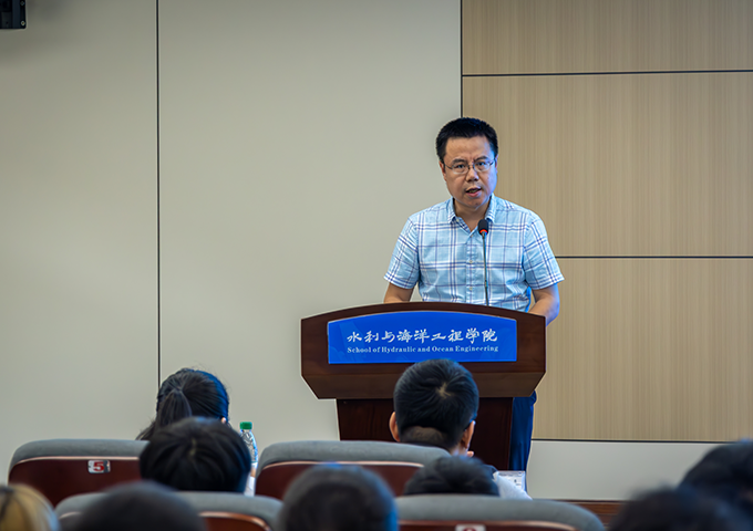 姚宇代表导师发言。他以“求真、耐寂、探索、融合”四种精神勉励研究生新生尽快完成从“学习者”到“创造者”的转变,坚守学术道德、锤炼科研意志,做真正“底色亮、能力强、善创新、敢担当”的水利人。
