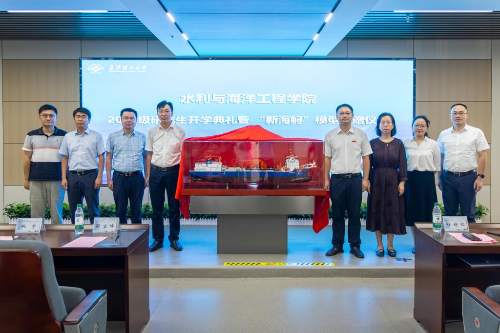 9月15日下午,水利与海洋工程学院2025级研究生开学典礼暨“新海鲟”轮模型捐赠仪式在云塘校区新能源大楼举行。中交上海航道局有限公司人力资源部总经理程绪红,中交上航局中交水利公司党委副书记、总经理邵宝峰、人力资源部总经理助理钱俊、中交水利水电建设有限公司人力资源部经理刘江丽、中港疏浚有限公司人力资源部经理王荣丽,水利学院院长陈杰,博士生导师姚宇,副院长伍志元等领导嘉宾出席。活动由学院研究生辅导员杜丘主持。