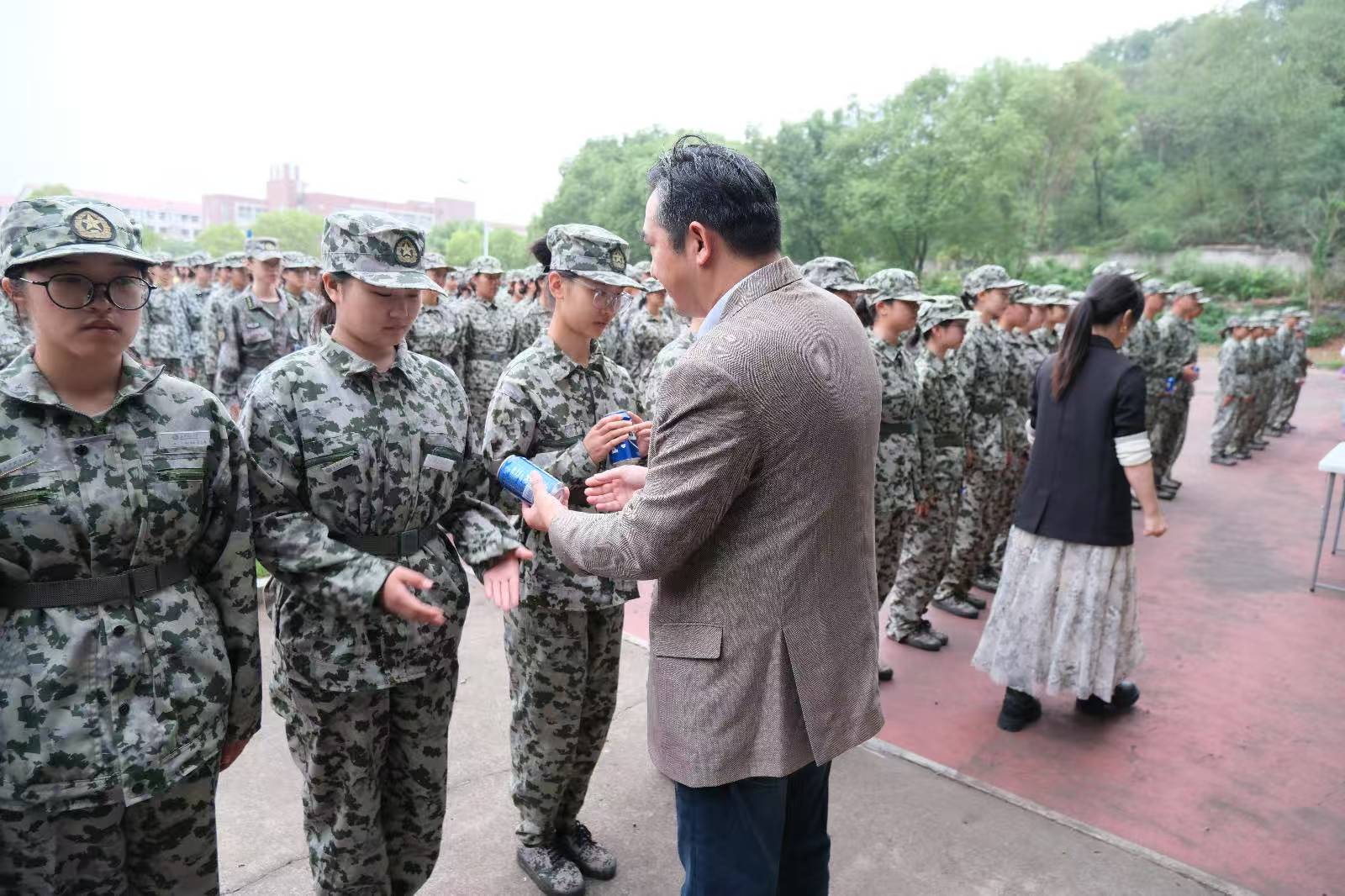 军训场上,新生们身着迷彩军装,队列整齐、精神抖擞,展现出了专注的态度与饱满的精神。郭剑代表学院向全体参训新生和教官致以诚挚问候。她对同学们昂扬向上的精神面貌和坚韧不拔的训练劲头给予了充分肯定并勉励大家继续保持优良作风,将军训收获转化为成长动力。随后,学院领导们为新生们送上慰问品,不仅体现了学院对每一位同学的关注与关怀,也寄予了学院对2025级新生的美好祝愿和殷切期望。