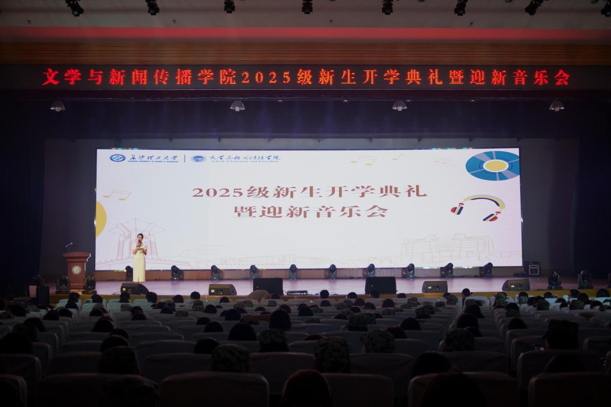 9月28日晚,文学与新闻传播学院在金盆岭校区5教大礼堂举行2025级新生开学典礼暨迎新音乐会。全体院领导、系主任、系副主任、支部书记、辅导员、2025级本科班主任等出席活动。