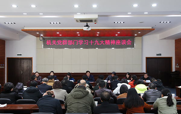 12月19日下午,学校在一办公楼九会议室召开党群部门学习党的十九大精神座谈会。校党委书记付宏渊出席座谈会并发表讲话。会议由机关党委常务副书记刘安生主持。机关党群部门全体党员参加。