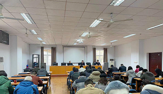 3月3日下午,城南学院在金盆岭2-201召开学习贯彻党的十九届五中全会精神大会,全体教职工参加学习,院党委副书记陶传谱主持。