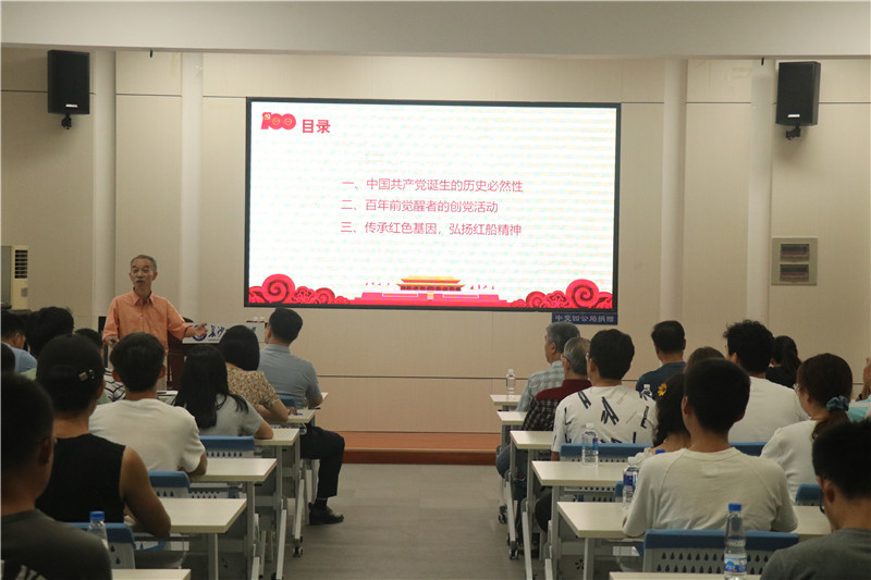学校党史研究专家张可荣老师以《从创党历史中汲取青春力量》为题,从中国共产党诞生的历史必然性、“觉醒者”的创党活动、如何传承红色基因三个方面进行讲述。他谈到中共一大参与者平均年龄20多岁,创党党员中湖南籍占三分之一,当代青年要从历史中辨明前行的方向,在湖湘这片热土上汲取精神力量。