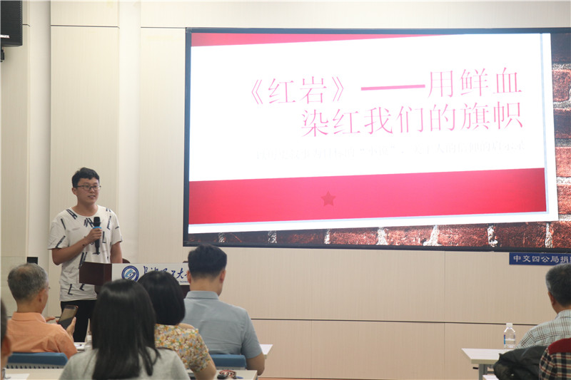 学生代表尹振浩以《红岩——用鲜血染红我们的旗帜》为题,展示了齐晓轩、许云峰、江雪琴等共产党人在狱中所进行的英勇战斗的可歌可泣的英雄群像。他高声朗诵刘思扬最后的诗“同志们,听吧!像春雷爆炸的,人民解放军的炮声! 人民解放了! 人民胜利了!我们——没有玷污党的荣誉! 我们……”,现场无不为之动容。