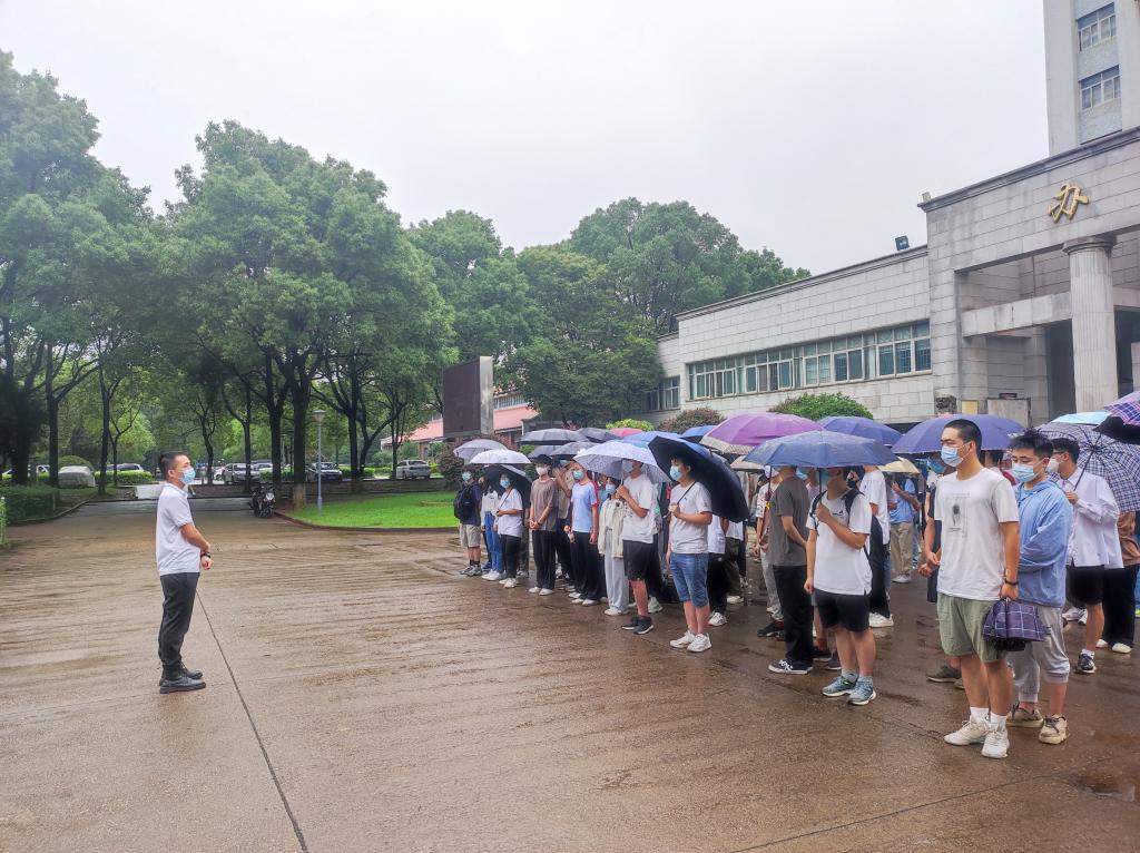 随着国歌奏响,同学们昂首挺胸行注目礼,目光随着国旗缓缓上升,迎着飘落的雨滴,心中燃起昂扬的青春之火。随后民兵连同志带领全体成员进行宣誓,誓做有担当、敢做为的新时代青年。升旗仪式结束后,土木2106班姚燕英在国旗下以“青春心向党,喜迎二十大”为题进行演讲。她说“生逢盛世,当不负盛世,生逢其时,当奋斗其时。”对于已经到来的期末考试月,她呼吁大家“人无信而不立,希望同学们以诚信考试为荣,以违纪作弊为耻,弘扬求实学风,维护知识尊严!”最后,邓文杰就近期同学们比较关心的期末备考、学科竞赛、宿舍搬迁、安全教育等问题逐一说明并预祝大家考试顺利。
