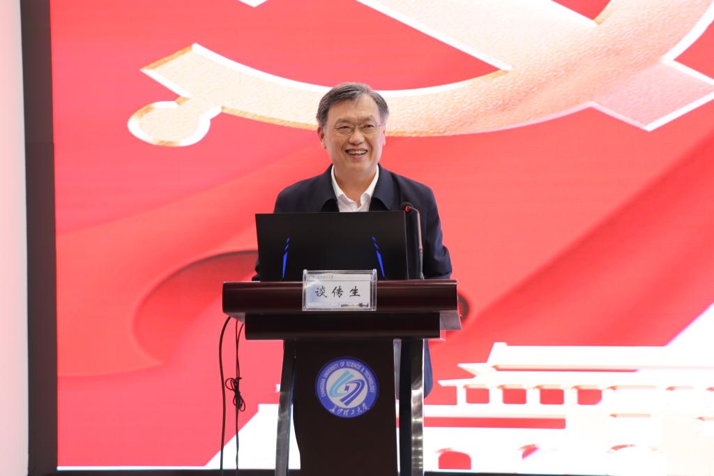 本次党课以《端正入党动机,加强党性修养》为题。正值中国共产主义青年团成立一百周年,谈传生提出,党员发展对象首先要履行共青团员的责任与义务,中国共青团是党的后备军,初心和使命是坚定不移跟党走,为党和人民而奋斗。他指出端正入党动机重要的是牢记党的教育,立志民族复兴,努力做好“三个不负”,要做社会主义核心价值观的坚定信仰者、积极传播者、模范践行者。他详细讲述了中共一大13位代表的故事,来阐释坚定理想信念的重要性、端正入党动机的含义极其重要意义。针对当代大学生不良入党动机及其纠正,谈传生从理论学习补钙、实践锻炼“强筋”、传统文化“提气”三个方面展开讲述如何加强党性修养。
