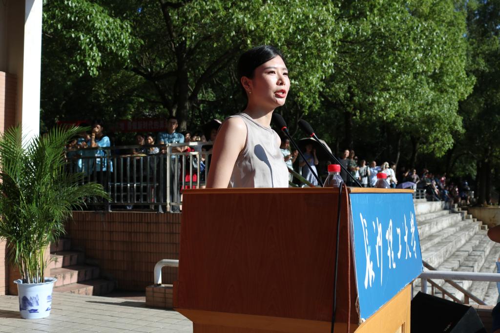 毕业生代表交通运输工程学院杨倪坤表示将坚定“四个自信”,践行“八字箴言”,脚踏实地、不辱使命,传承和续写好“博学力行守正拓新”校训和“铺路石精神”,争做新时代的奋斗者。