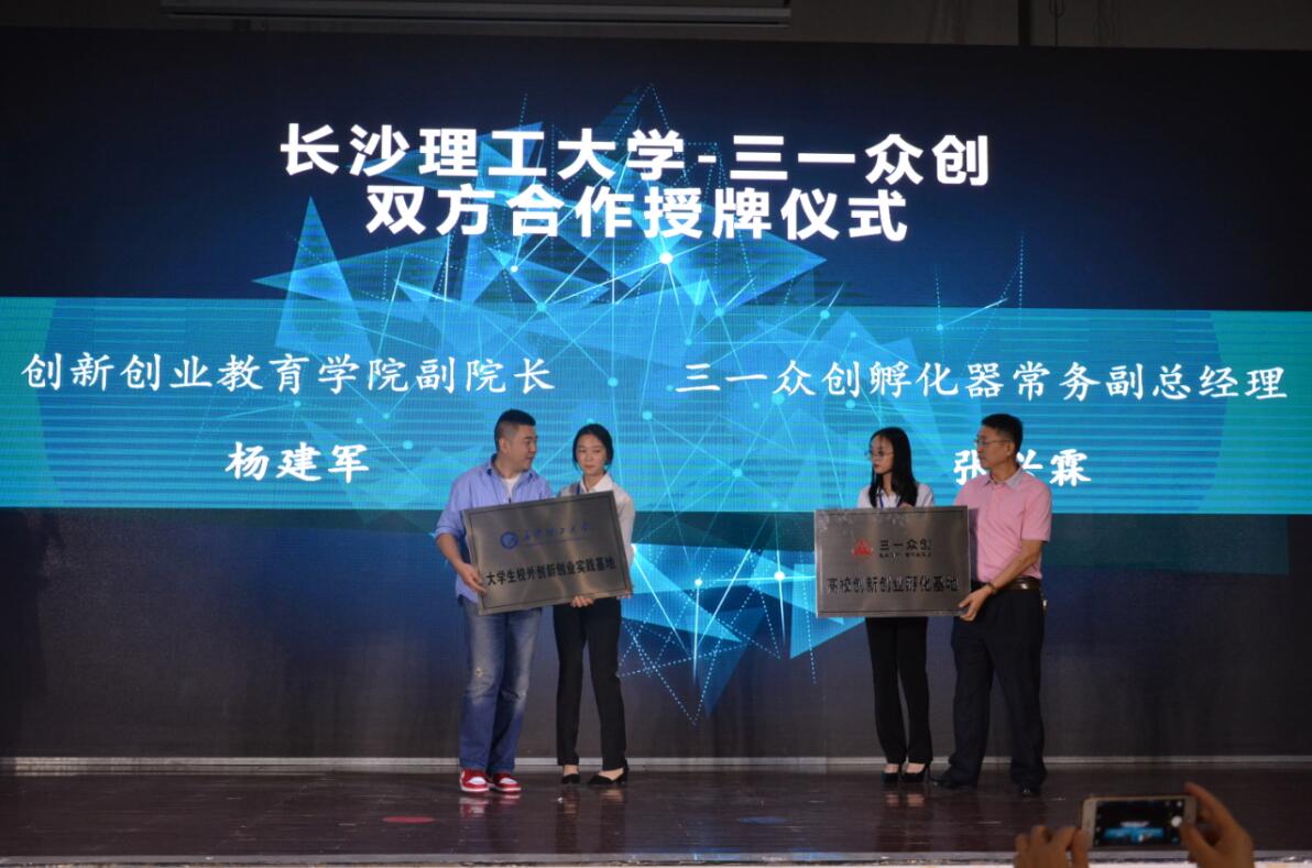 路演结束后,进行了永利官网与启迪之星(长沙)、三一众创双方合作授牌仪式,创新创业校外导师聘任仪式, 12个优秀项目入选启迪之星“壹计划”和三一众创“种子计划”培育项目证书颁发仪式。