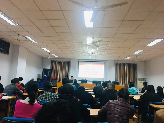 根据学校“不忘初心、牢记使命”主题教育总体部署安排,10月23日下午,院党委书记黄自力在金盆岭校区二教二楼会议室上专题党课。全体教职工参加学习。
