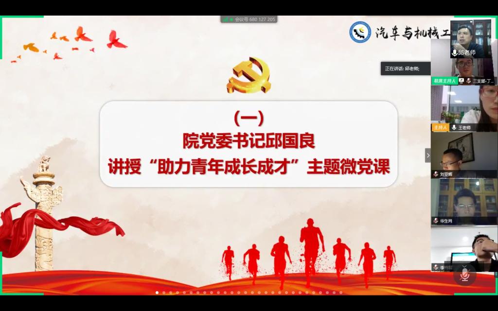 5月11日晚,汽机学院教工与学生党支部通过腾讯会议举行以“助力青年成长成才”为主题的师生党支部“云端”共建交流会。院党委书记邱国良、院长杜荣华、副书记刘亚辉、副院长毛聪、何志勇,各教工支部书记张明军、易继军、张鹏、肖新华、伍文广、学工办辅导员李特超、陶蓝和全体毕业生党员等参加本次交流会。党建辅导员王丽丽主持。