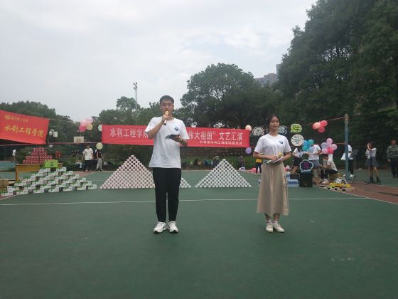 10月1日,水利学院分团委学生会在金盆岭校区东苑排球场举办“致敬伟大祖国”文艺汇演。值此国庆中秋双节之际,水利工程学院为向祖国表示祝福,向亲人表达思念及对完成军训的20级新生表示慰问,特举办此次活动。党委副书记吴振华,学工办主任刘灿到场指导协助开展活动,2020级辅导员王正博、水利学院分团委学生会部分成员、演出人员及20级全体新生到场参与活动。由学生会轮值主席余泽宇、刘如意担任活动主持。