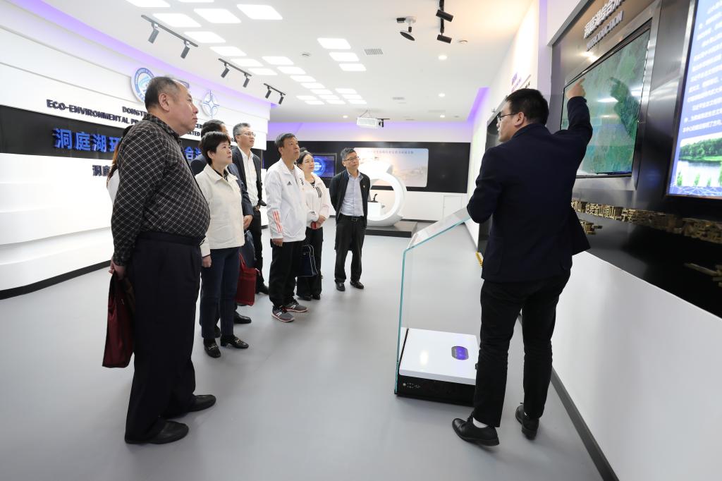 在“洞庭湖水环境治理与生态修复湖南省重点实验室”,学员们深入了解了洞庭湖水资源、水环境、水生态概况和当前面临的挑战与机遇、实验室的发展目标及近期在水生态保护方面取得的成效,观看了守护洞庭成果展板与地质地貌全息投影。2018年11月,湖南省委书记杜家毫调研永利集团88304官网时,强调学校要充分发挥学科优势,加强洞庭湖环境保护与综合治理研究,并现场提出了科研课题。2019年,学校建设完成“智慧洞庭信息化平台”,实验室以习近平总书记“节水优先、空间均衡、系统治理、两手发力”的十六字治水方针为指导思想,将物联网、地理信息系统、云计算、大数据、虚拟现实等新一代信息技术相结合,紧密围绕洞庭湖流域水安全突出问题,建成了针对防汛抗旱决策支持、河长制综合管理、流域水资源管理、工程运行管理等业务系统于一体的流域信息化平台。