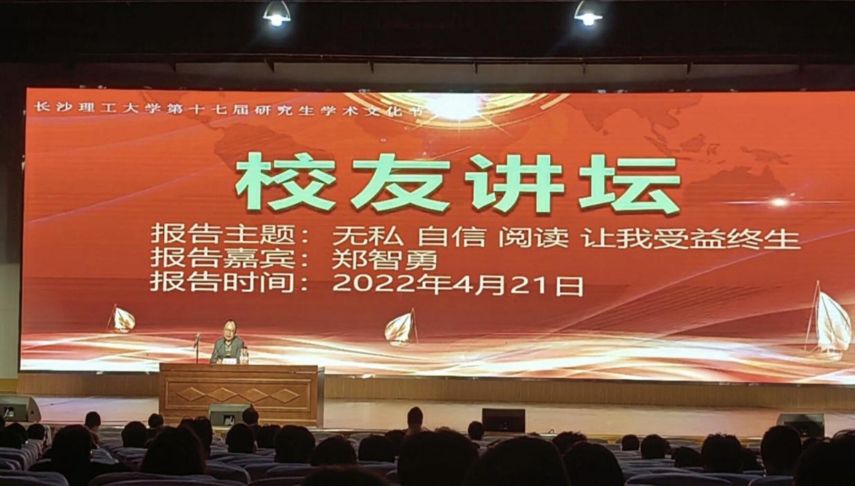 4月21日晚,电气与信息工程学院在金盆岭校区五教大礼堂举办第十七届研究生学术文化节系列活动之校友职业生涯讲坛。长沙科智防雷工程有限公司董事长、校友郑智勇应邀主讲,电气学院党委副书记任艮丰、辅导员王迪、张一鸣,金盆岭校区全体研究生和本科生参加。