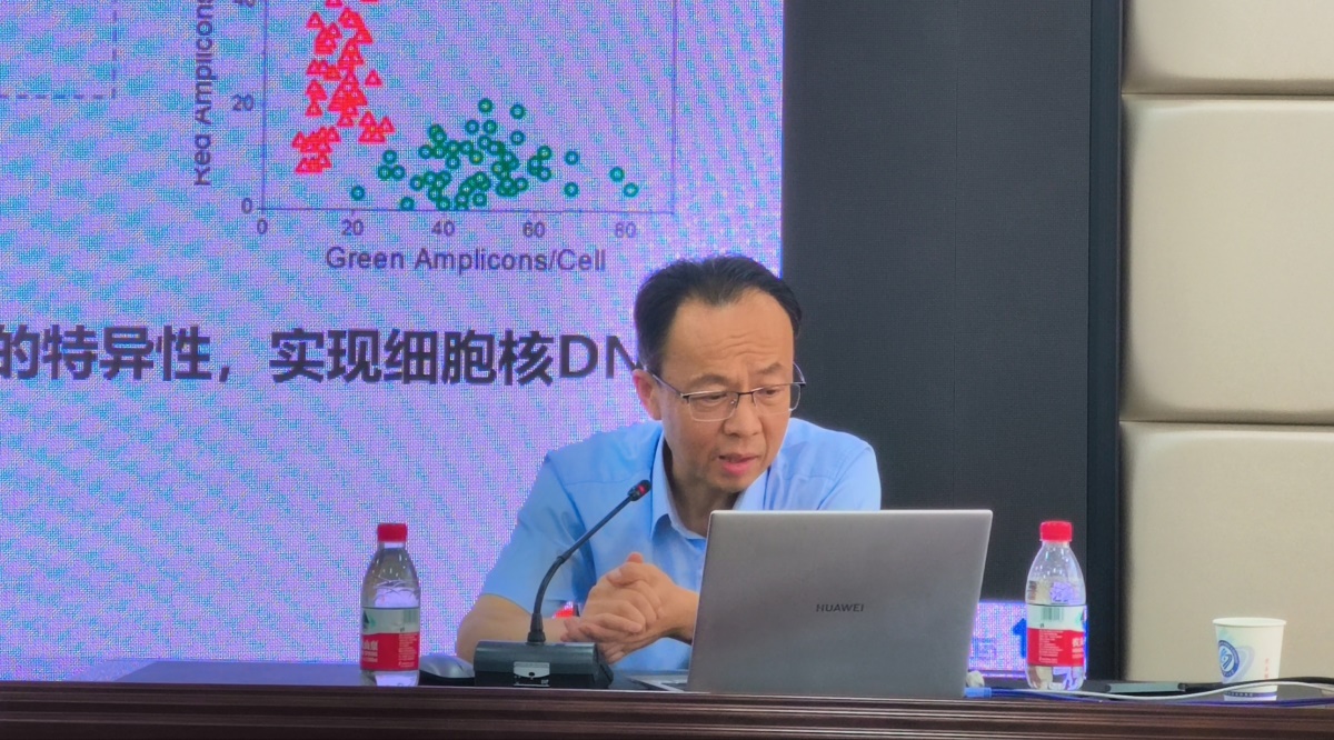 报告会上,李景虹分别从“非典病毒抗原免疫检测”、“新冠病毒及其异株的快速检测”、“猴痘病毒的基因进化监测”、“展望”四个内容依次展开精彩的汇报。