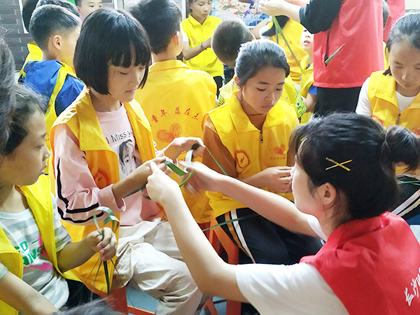 为传承优秀传统文化,弘扬志愿服务精神,5月27日下午,艺术学院于彭家巷青年之家举行“端午继国学·粽叶编童梦” 艺力量志愿服务活动,2018级20余名志愿者参与。