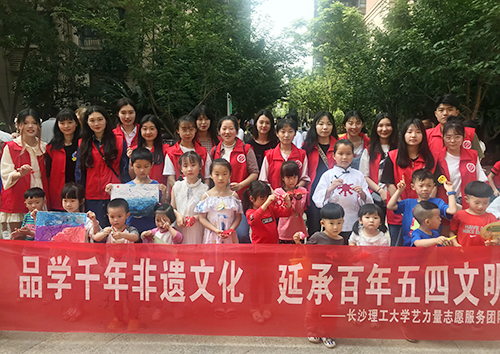 本次活动旨在弘扬传统文化,传播非遗精神。一系列精彩的演出后,永利官网艺术学院艺力量志愿服务团队展开长沙剪纸体验、中国结制作、百变泥人、创意色彩的美育及非遗课程体验,有趣的活动内容,无不吸引着孩子们。志愿者们用心教授,让孩子们通过手工的形式,体会到传统文化的魅力,整个活动氛围轻松有趣。最后,青年志愿者们与孩子们进行了合影留念。