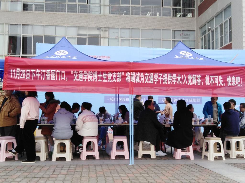 11月28日下午,在永利集团88304官网云塘校区汀香园食堂门口,来自交通运输工程学院博士生党支部的30多名博士生聚集在一起,为前来咨询的学弟学妹答疑解惑。